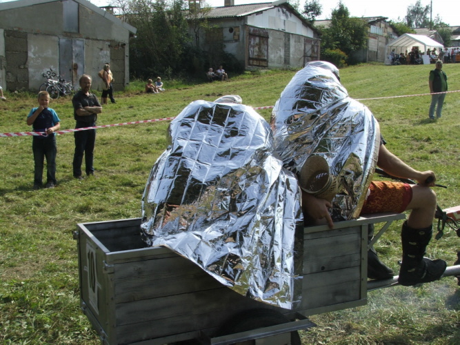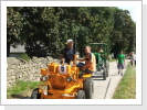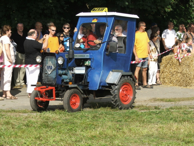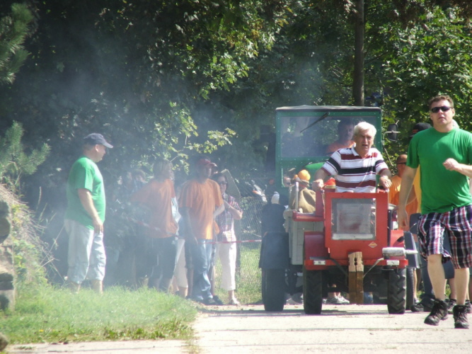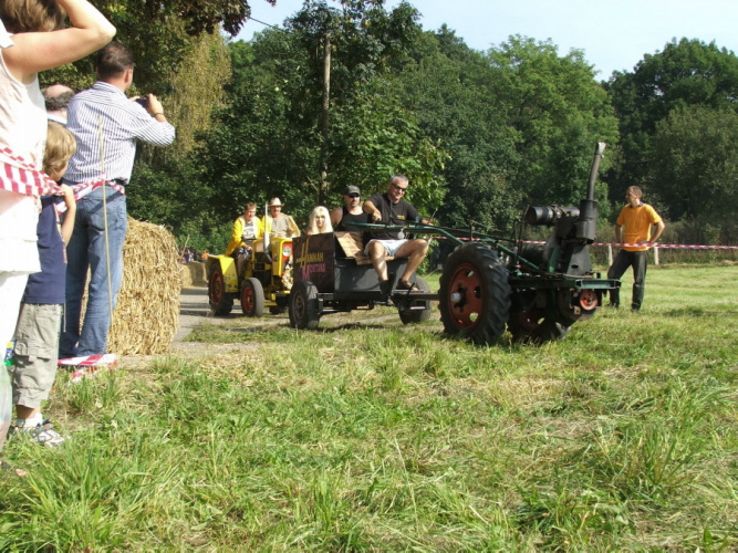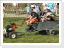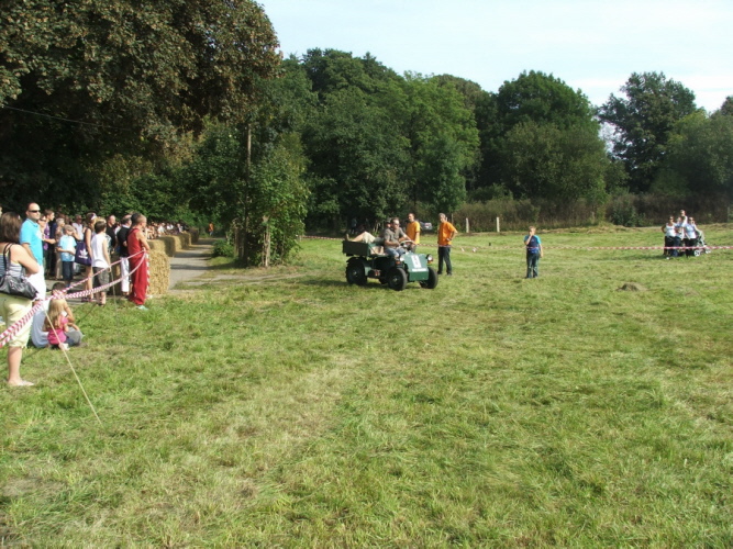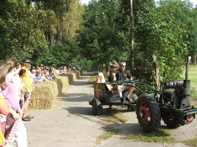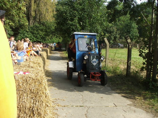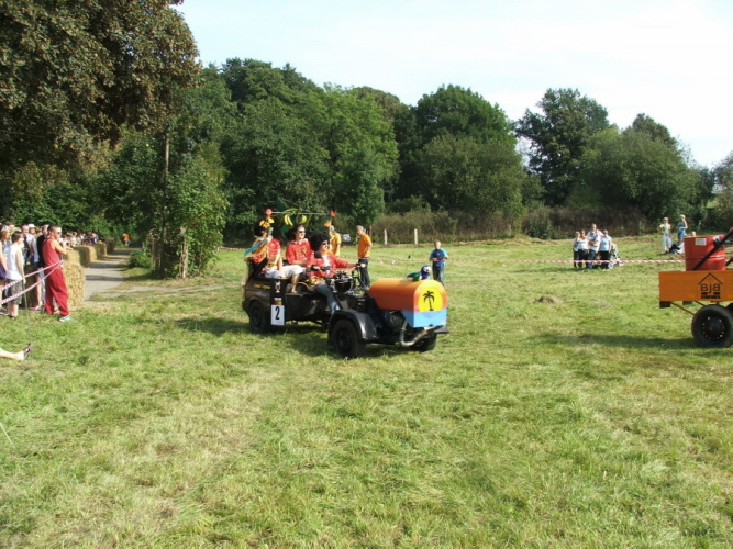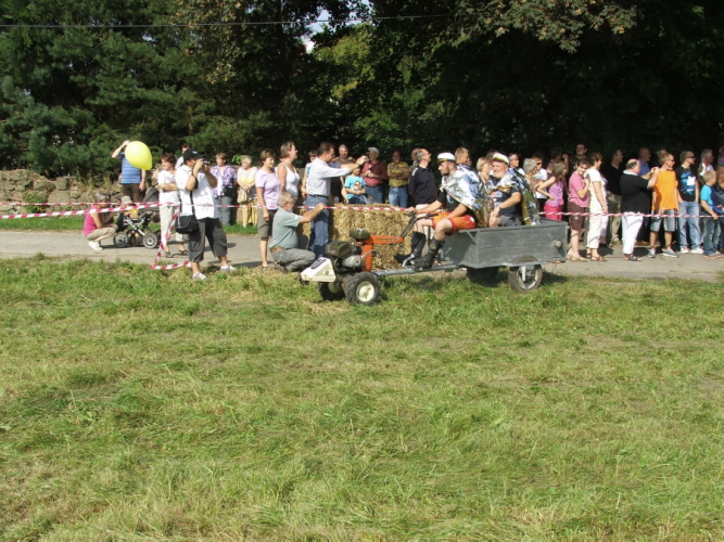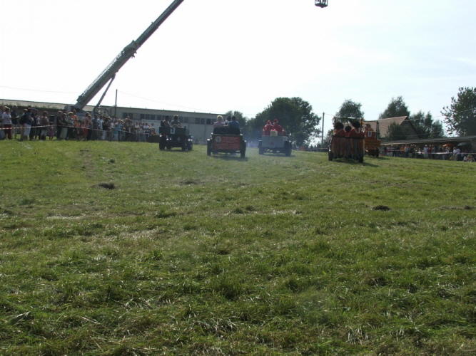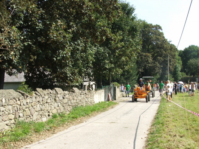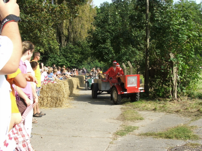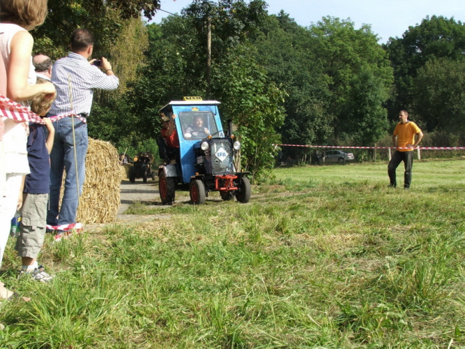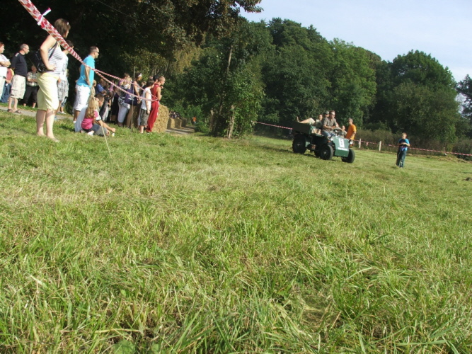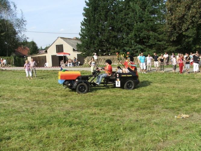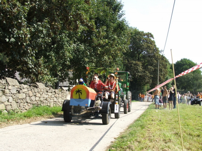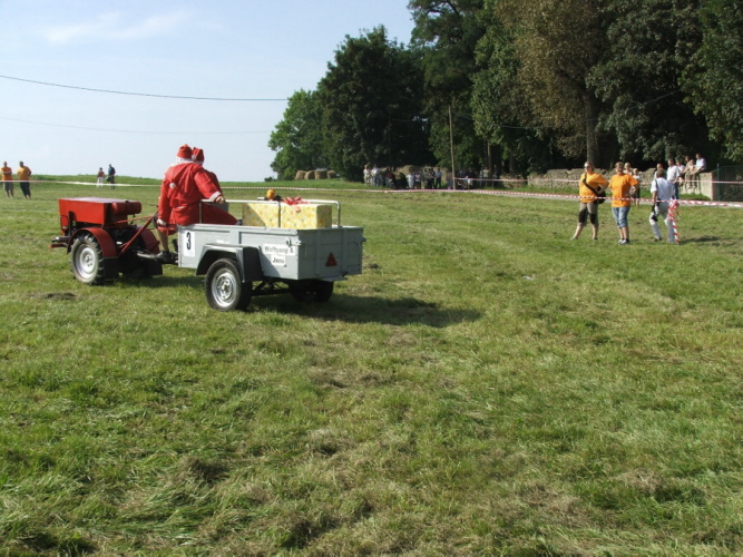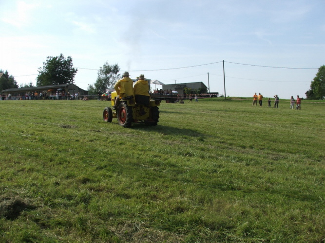 Nach einer verdienten Pause, in der die Fahrzeuge nochmals auf ihre Funktion gecheckt wurden und Hunger und Durst beim Schönfelder Jugendclub gestillt werden konnten, wurde um 14.45 Uhr das Rennen gestartet. Es nahmen nun neun Fahrzeuge am Start Aufstellung. Das Team „Mertens Elche“ aus Dresden konnte dabei schon nicht mehr antreten, da das um 1945 erbaute Gerät einem Motorschaden erlegen war.