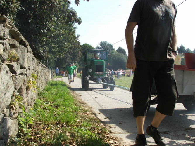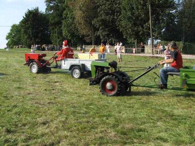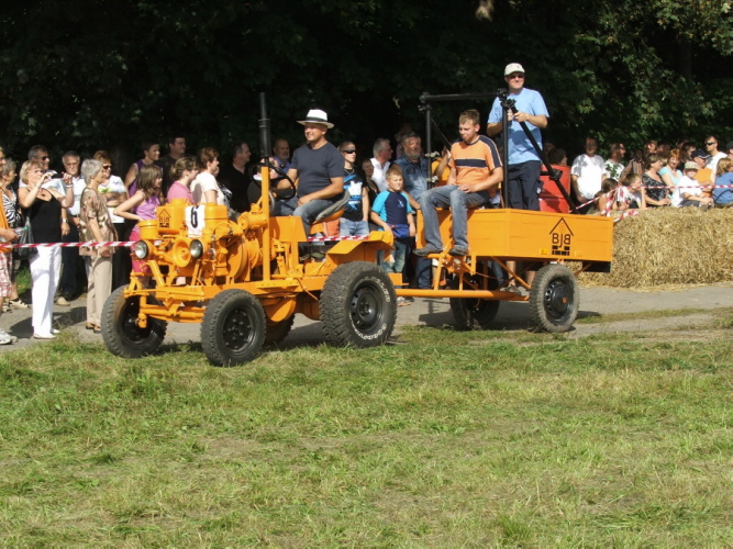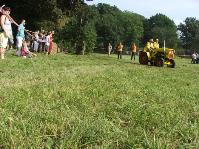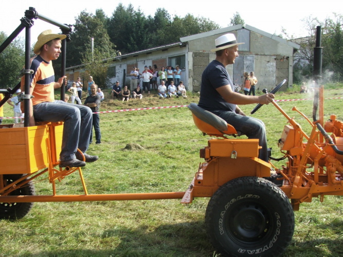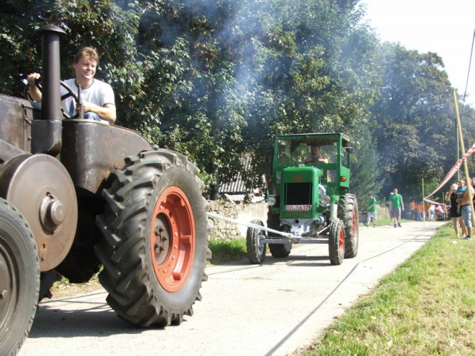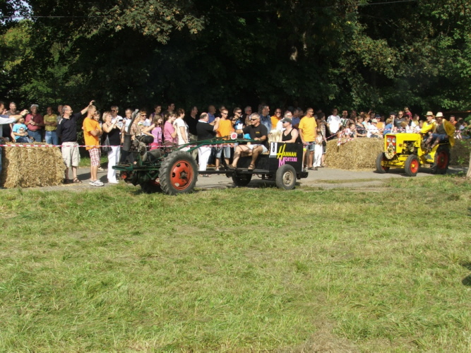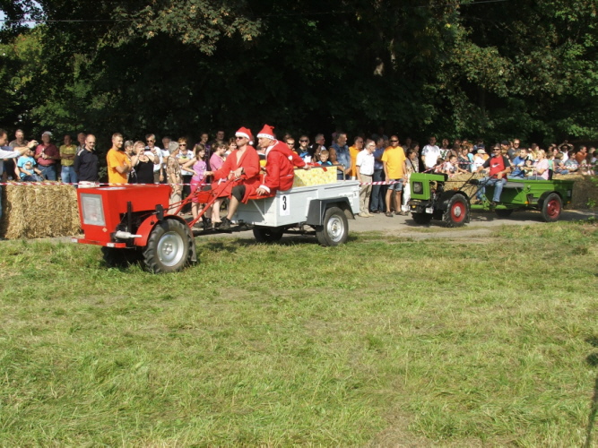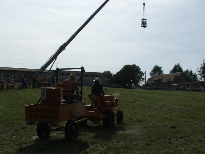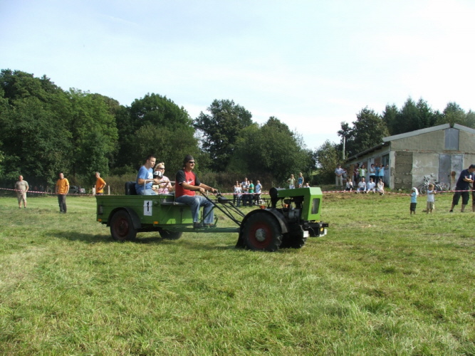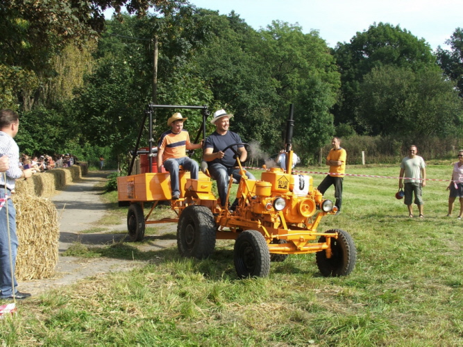Die erste Disziplin, das Schleppen eines Traktors der Marke „Aktivist“, forderte vor allem die Leistungsfähigkeit der Maschinen ab. Nach dieser lagen die „Rockauer Weihnachtsmänner“, Wolfgang Leuthold und Jens Wolf, vor dem Schönfelder Team „Feldmäuse“ mit Steffen Roch und Ralf Draßdo und einem weiteren Rockauer Duo, den „Gelben Engeln“, Andreas Ludwig und Gunter Schneese, in Führung.