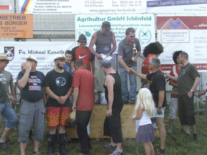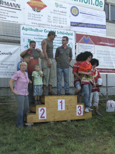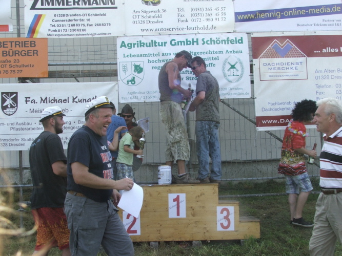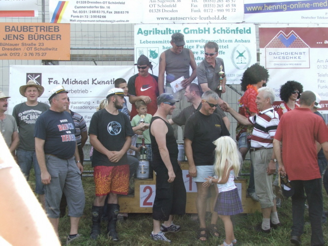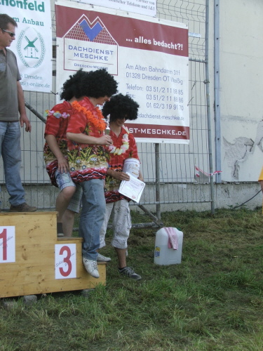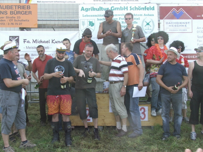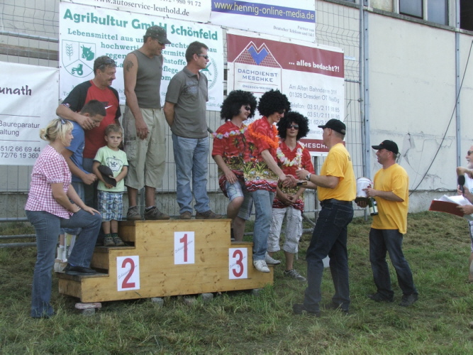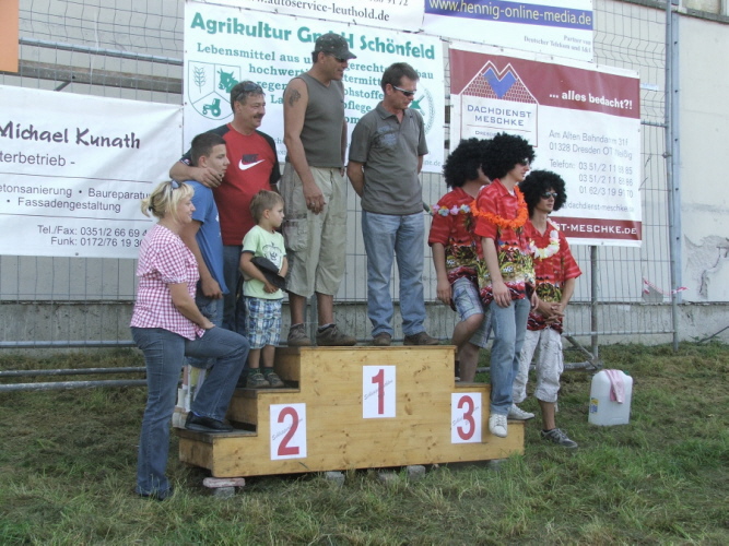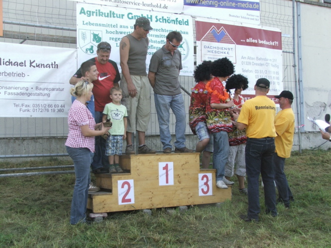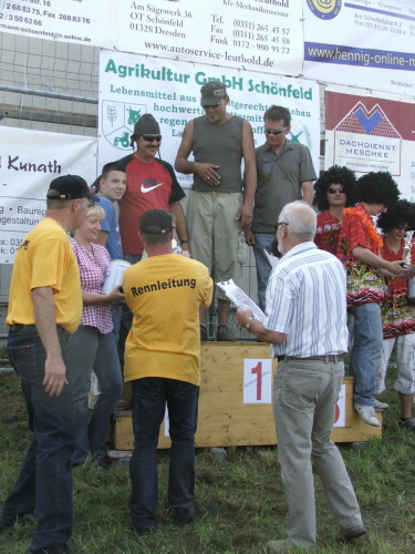 Als verdiente Sieger kamen die „Feldmäuse“ über die Ziellinie, die Zweitplatzierten wurden Team „Schreiter“ mit Guntram, Paul und Felix Schreiter und den dritten Platz holte sich der „Hawaii-Express“ mit dem Sieger des Jahres 2009 Patrick Hagemann und seinen Begleitern Martin Böhm und Dirk Wenzel. Sie hatten offensichtlich wertvolle Zeit verloren, als sie unterwegs Bananen in die Zuschauermenge warfen.