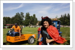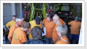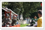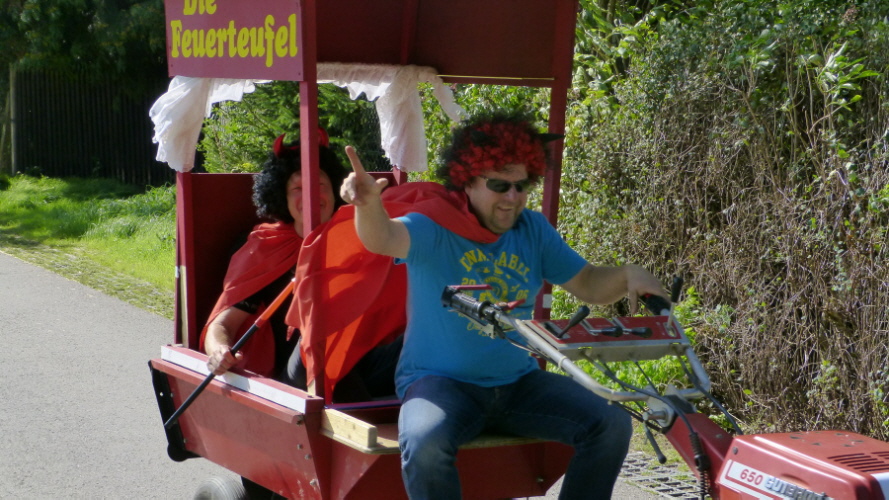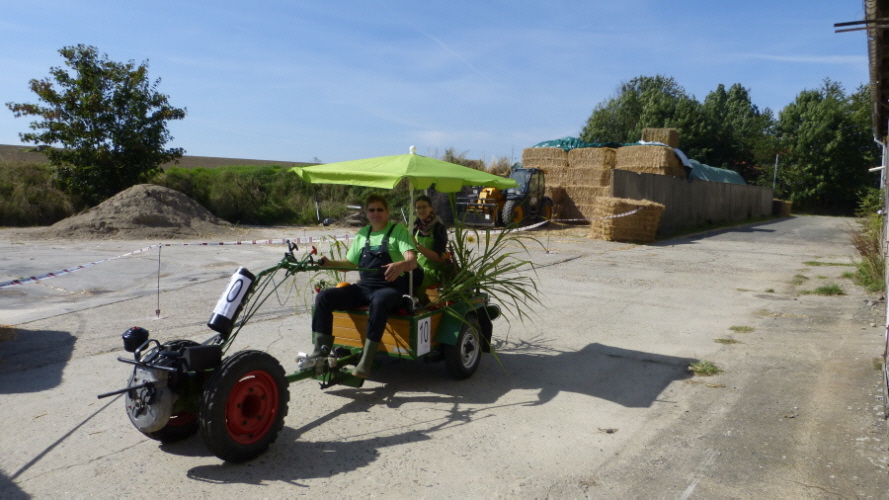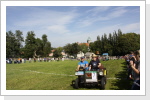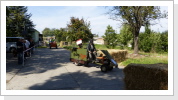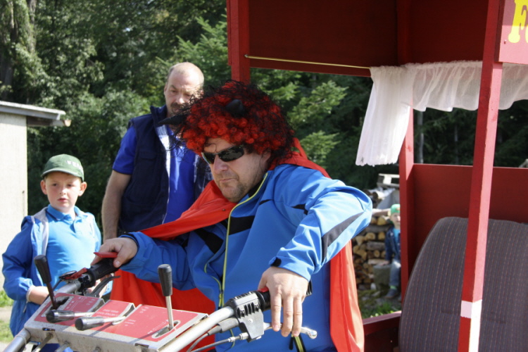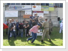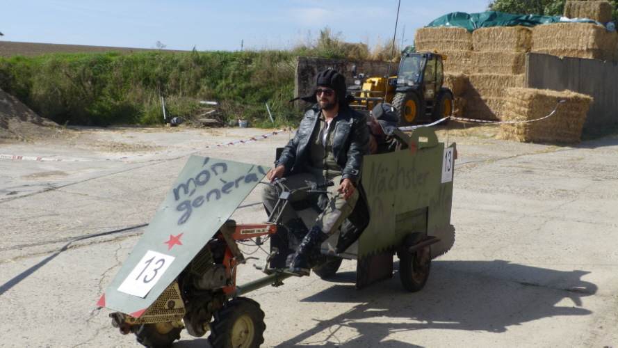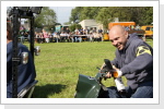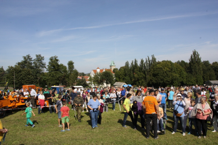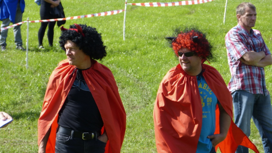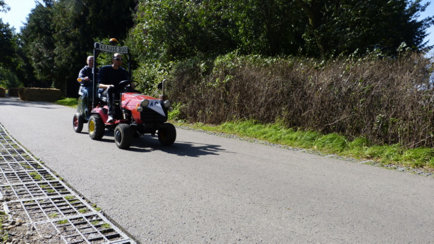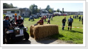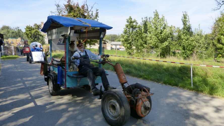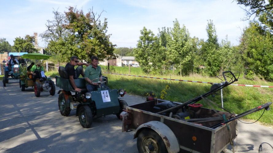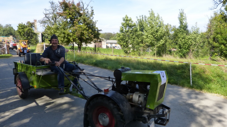 Mit wahrhaftem Feuereifer kämpften nun alle Teilnehmer um die Platzierungen. In manchen Gesichtern waren Konzentration und Ehrgeiz zu erkennen, in anderen stand Enttäuschung geschrieben, weil die Maschine ihren Dienst versagte und viele strahlten einfach nur, weil sie eine Menge Spaß hatten und vom Publikum kräftig angefeuert wurden. Die Fans vom „Team Feldmaus“ taten das sogar mit eigenen Schildern. Der legendäre „Schlusslicht-Schlepper“ von Jens Bürger bekam dieses Mal tatsächlich noch langsamere Konkurrenz und auch die Fahrt von Gunter Merten stand in diesem Jahr unter keinem guten Stern, denn sein Gefährt blieb wieder mit einem Schaden auf der Strecke. Die „Feuerwehr“ aus Rockau spritzte sich hingegen einfach den Weg frei.