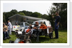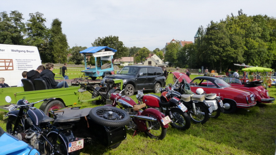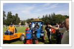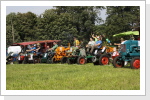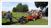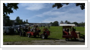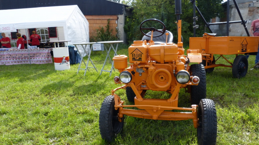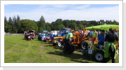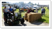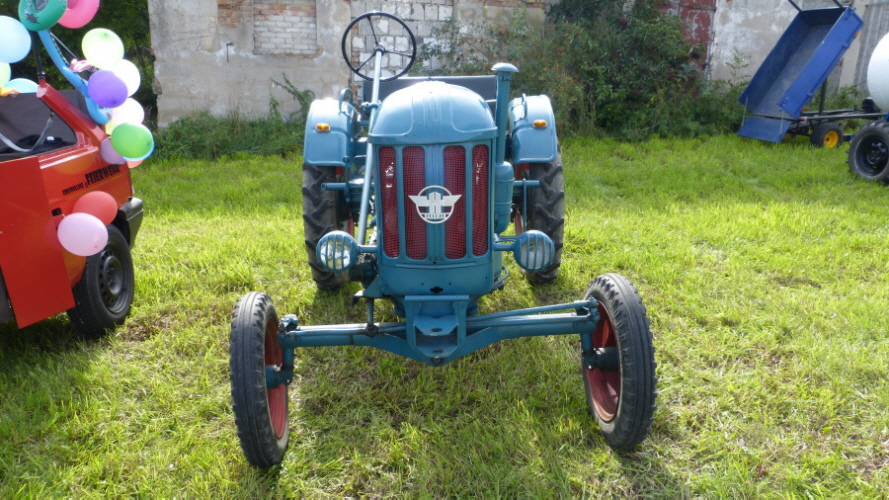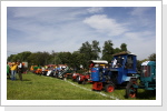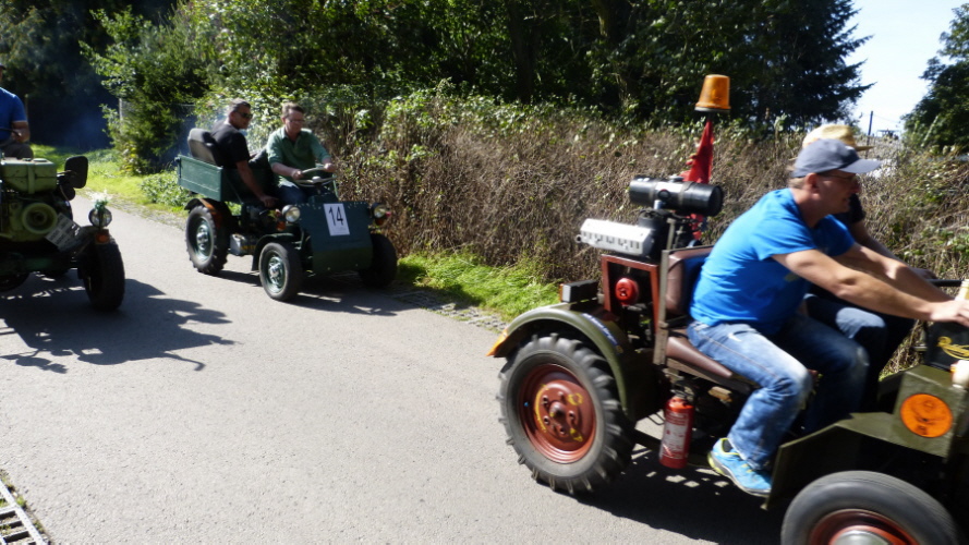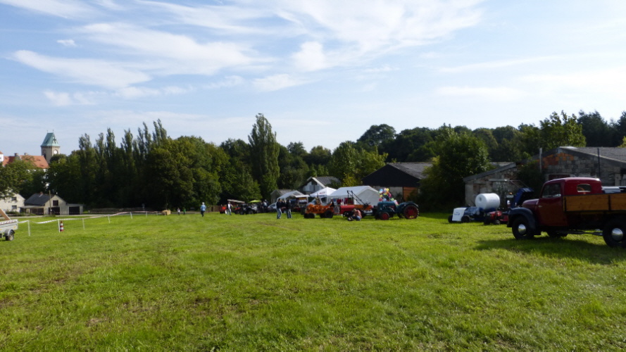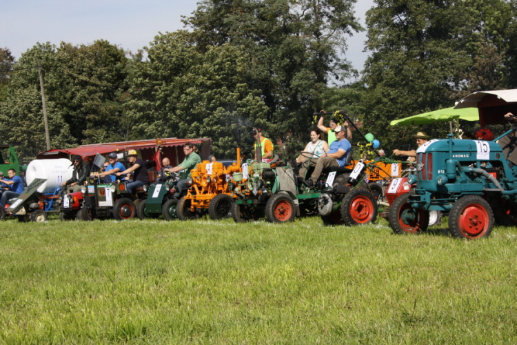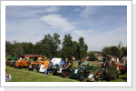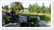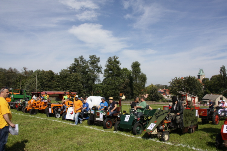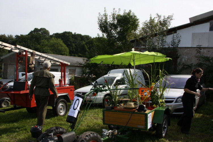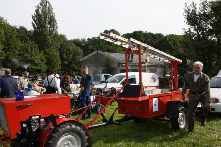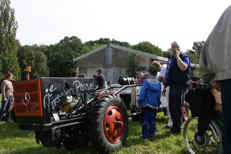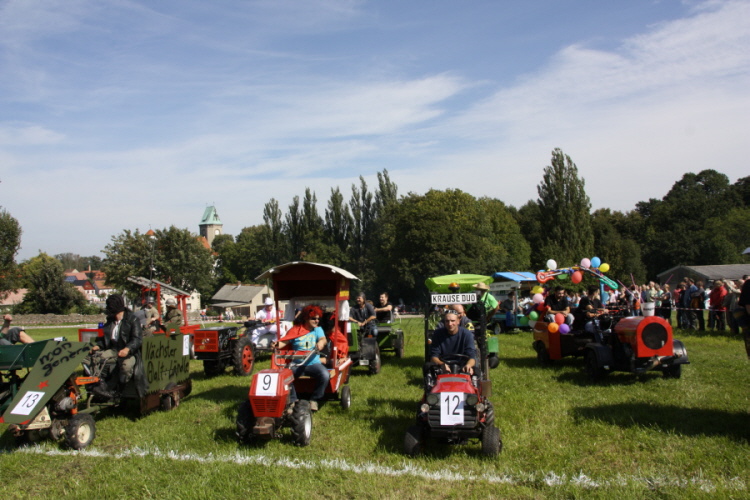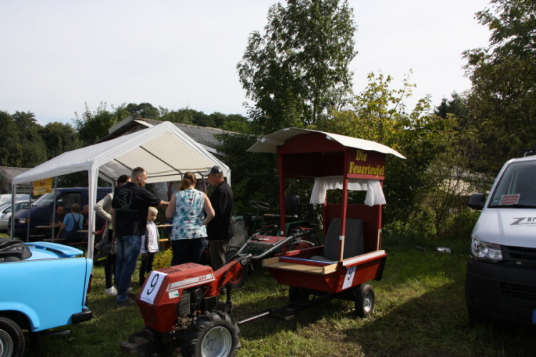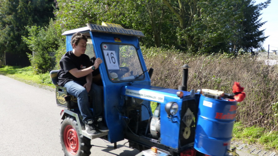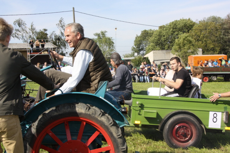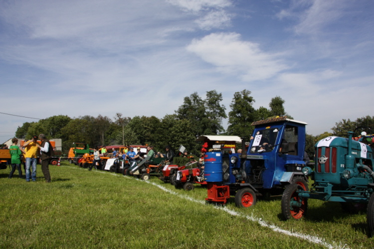 Schon morgens gegen 8 Uhr nahmen die ersten Gefährte Aufstellung und nach und nach füllte sich das Fahrerlager mit unterschiedlichsten Schleppern vom einstmals originalen bis hin zum selbsterbauten originellen Modell. Natürlich waren die Fahrzeuge wie immer für den Anlass hergerichtet, sei es frisch geputzt oder gestrichen, geschmückt oder gar als „Heißer Ofen“, „Feuerwehr“ oder „Feuerteufel“ aufwändig gestaltet. Bei so viel Hitze und Feuer in den Namen der Gefährte, zeigte sich sogar die Sonne von ihrer besten Seite und verschaffte damit optimale Rennbedingungen.