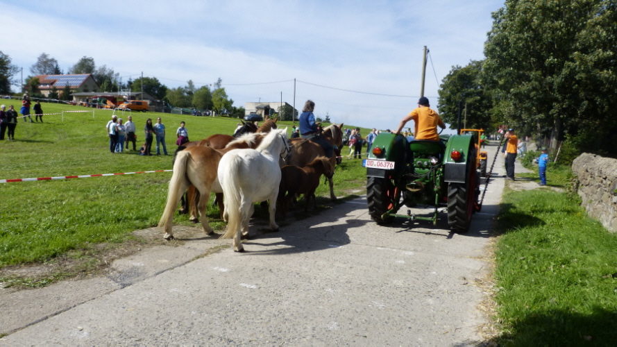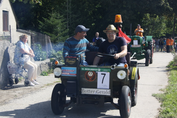 Am Sonntag des 19. Hochlandfestes war es wieder soweit, insgesamt 18 Schlepperfahrzeuge -sogar bis aus Dessau kommend- trafen sich in Schönfeld. Bei den Disziplinen, in denen sich die Teilnehmer gemessen haben, handelte es sich um das „Schleppen“ eines Traktors „Famulus“ über eine Entfernung von 50 Metern, bei dem eine Zeitmessung erfolgte und das sieben Runden dauernde „Rennen“. Dieses wurde auf einer mit Strohbündeln präparierten, etwa 800 Meter langen Strecke ausgetragen.