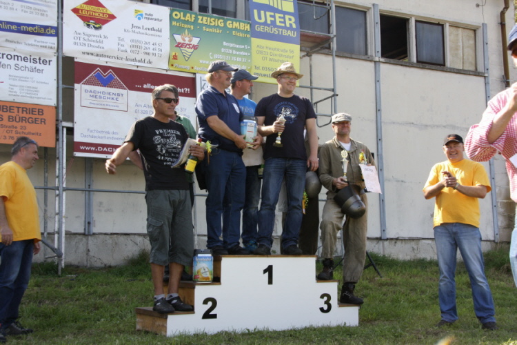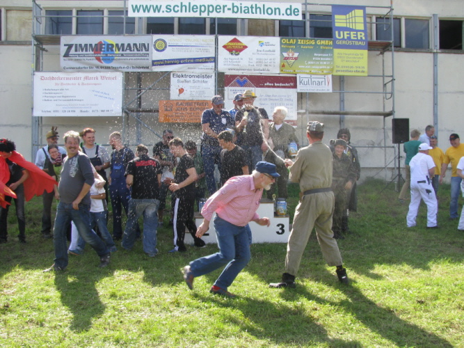Beim Kampf um den Sieg behielt „Der Flotte Gerald“ mit Thomas Jungmichel und Ronny Heinz die Nerven, und verwies „Team Feldmaus“ mit Steffen Roch und Ralf Draßdo nach einem harten Duell auf Platz zwei. Als Dritter behauptete sich die „Feuerwehr“ mit Jens Wolf und Wolfgang Leuthold. Diese beiden „Feuerwehrmänner“ erhielten auch den erstmals von der „Rennleitung“ gestifteten Preis für den schönsten Schlepper, der durch die Teams ausgewählt wurde.
