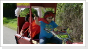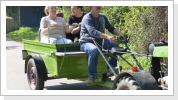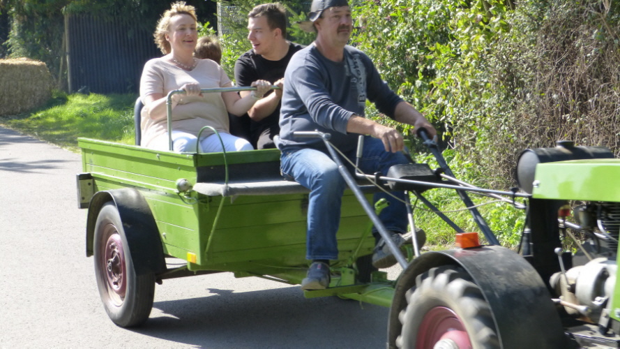 Unter die Teilnehmer hatte sich auch Ortsvorsteherin Daniela Walter gemischt, die mit dem rennerfahrenen Guntram Schreiter und seinem Beifahrer Paul Schreiter in deren Schlepper „Die Hochlandschrauber“ unterwegs war. Sie musste ihre ganze Kraft aufbringen, um fest auf ihrem Platz sitzen zu bleiben. Nach einer holprigen Fahrt, die ihr trotz der Anstrengungen offensichtlich viel Freude gemacht hatte, gelangte auch sie sicher ins Ziel.